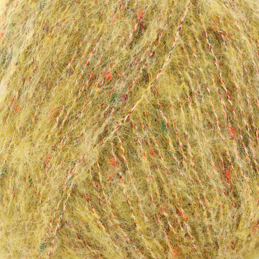 Brushed alpaca creates a soft halo while the cotton, wool and nylon core seem to illuminate flecks of color in our new yarn Mistico. The fabric created with this yarn is soft and light but retains a good stitch definition.Brushed alpaca creates a soft halo while the cotton, wool and nylon core seem to illuminate flecks of color in our new yarn Mistico. The fabric created with this yarn is soft and light but retains a good stitch definition.