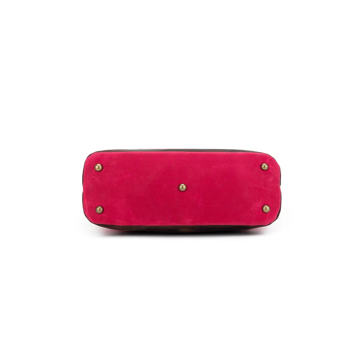 The della Q Maker's Canvas Tote combines a chic design and functional features with enough space to hold your yarn, needles, pattern, and so much more. The rustic genuine leather accents scar beautifully with time and the waxed canvas makes it unique to you. The Tote is eye-catching with a cozy, color-blocked aesthetic that carries knitting goods with ease. 15" w x 13.5" h (not including handles) x 5" d