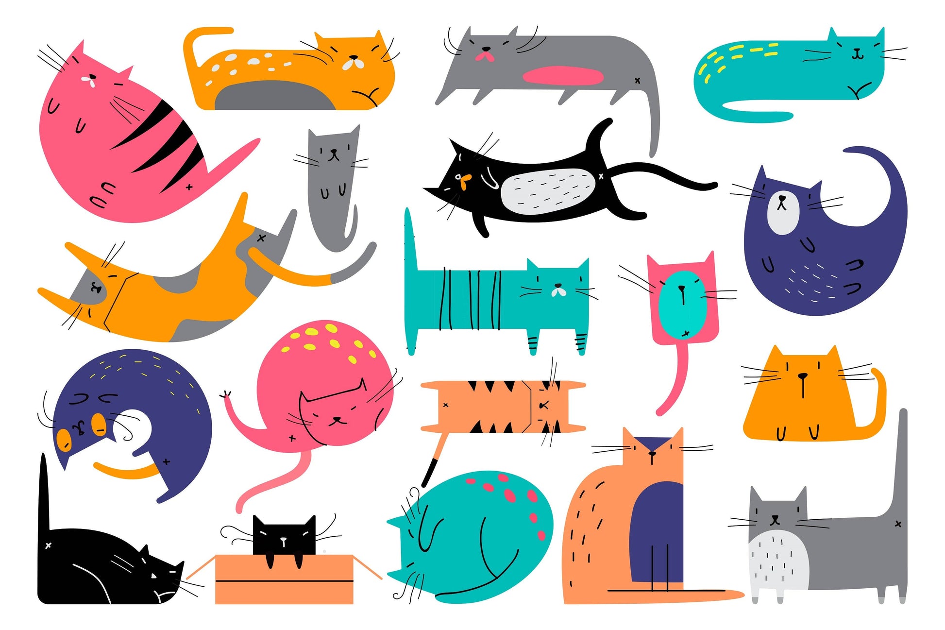 Cats in Bright Colors Laying around Sketches Swedish Dishcloth