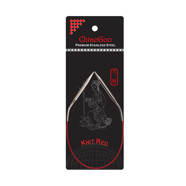Chiaogoo 12″ (30 cm) Knit RED™ line of surgical stainless steel circulars have a smooth, satin-sheen finish and memory-free, multi-strand, steel cable coated with red nylon allowing yarn to slide right over. The precisely machined tips are ergonomically designed with a bend to ease hand fatigue. Needle size is permanently laser imprinted on each circular. The joins are just spectacular!
