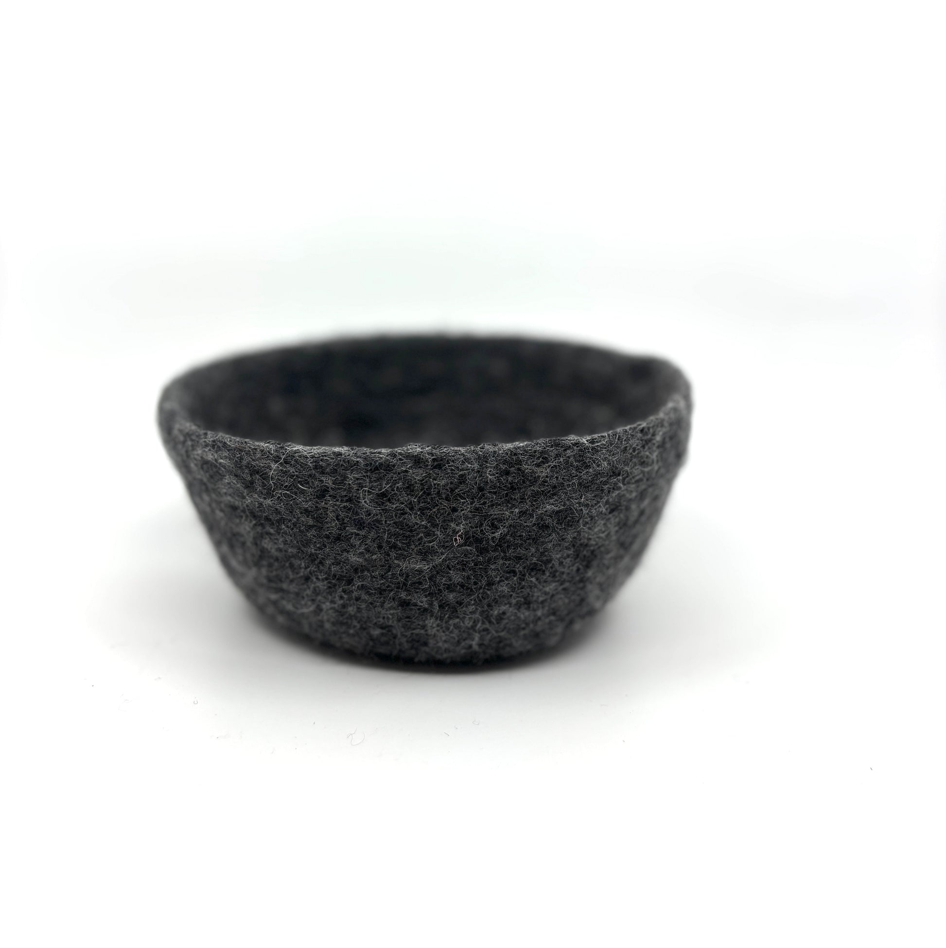 Fibres of Life Small Felt Bowl is a part of our decorative dish collection, designed to be versatile and aesthetically pleasing. The preset mix of monochromes and colors ensures that this bowl fits seamlessly into any decor. Crafted from 100% natural wool, azo-free dyes, and natural-death and naturally tanned leather, this bowl is a testament to our commitment to fair trade and eco-friendly practices.