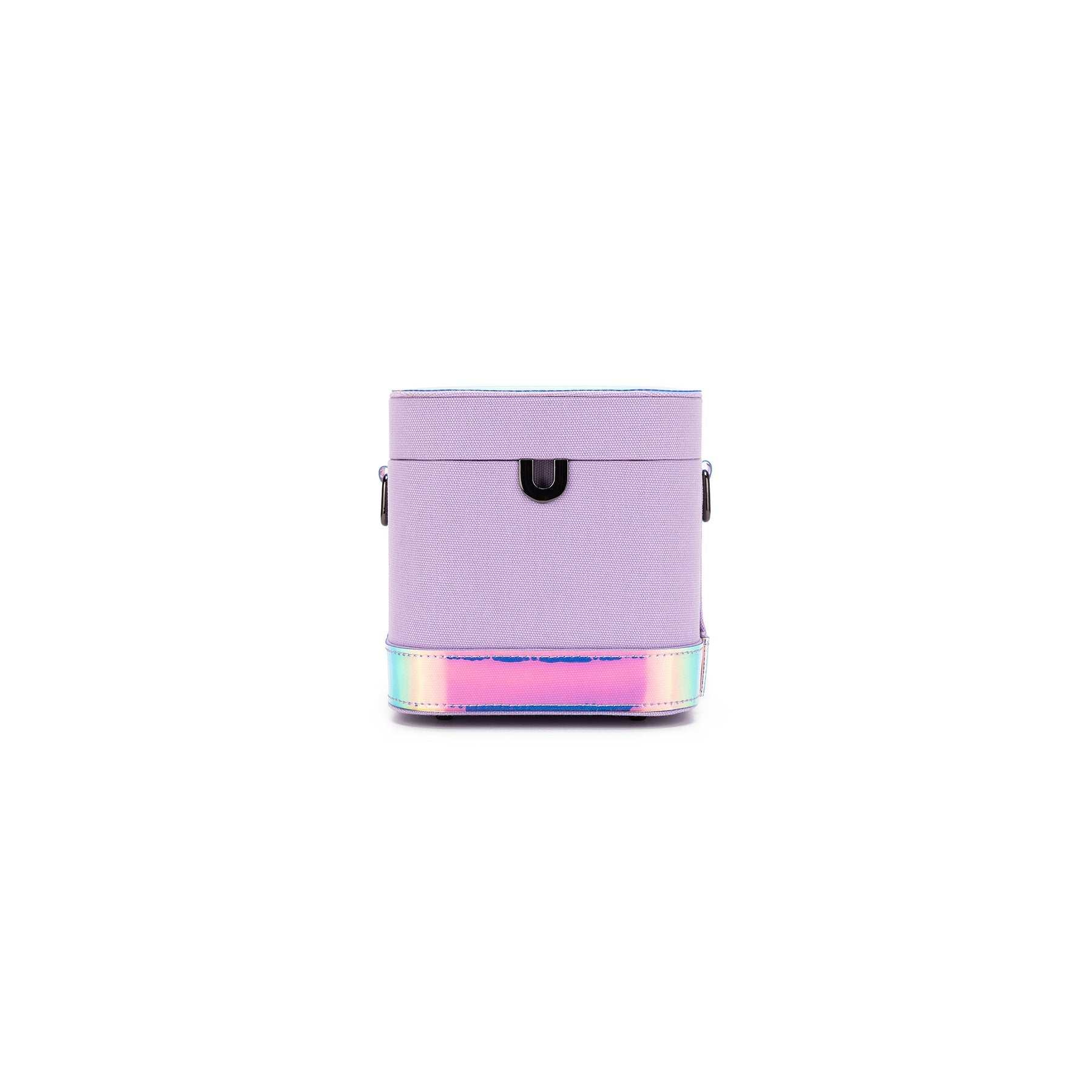 - Iridescent vinyl + canvas crossbody strap